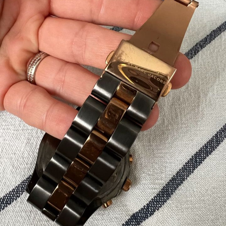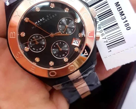 Indulge in the luxurious elegance of the Marc Jacobs Blade Chronograph Watch for Women - MBM8583. With its chic two-tone steel strap and sleek grey dial, this timepiece exudes sophistication. Perfect for the modern woman who values both style and functionality, this watch features a chronograph and adds a touch of refinement to any outfit.