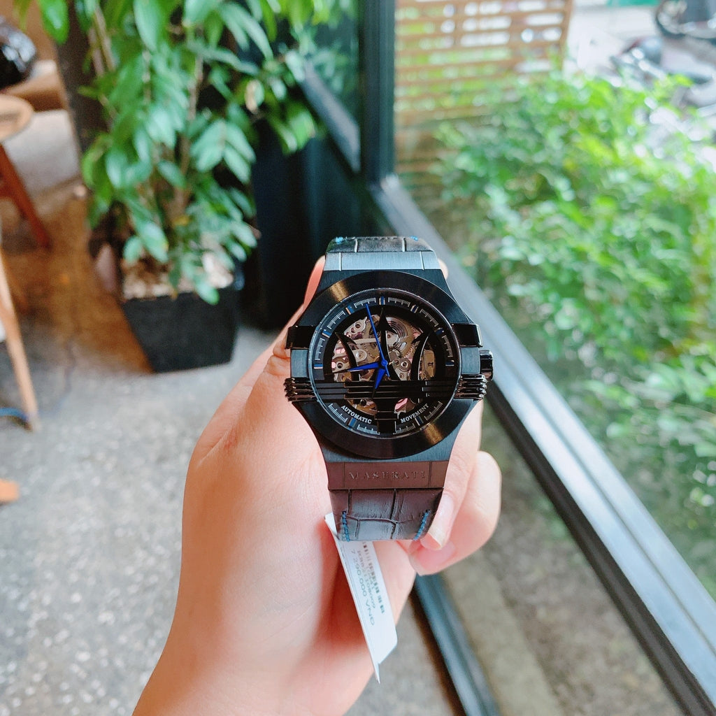 Maserati Potenza Automatic Black Dial Black Leather Strap Watch For Men - R8821108009