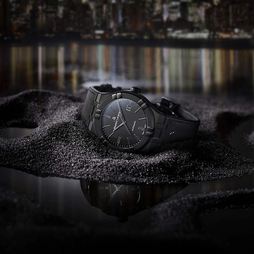 The Maurice Lacroix AIKON Automatic is the heart and the essence of the AIKON collection. Clad in black, this piece reaches a new status. The power of its black PVD does not conceal the timepiece’s sandblasted treatment. Its matt finish covers its 42 mm diameter case, its screw-down crown, and its bezel with its six arms that are so characteristic of the AIKON.