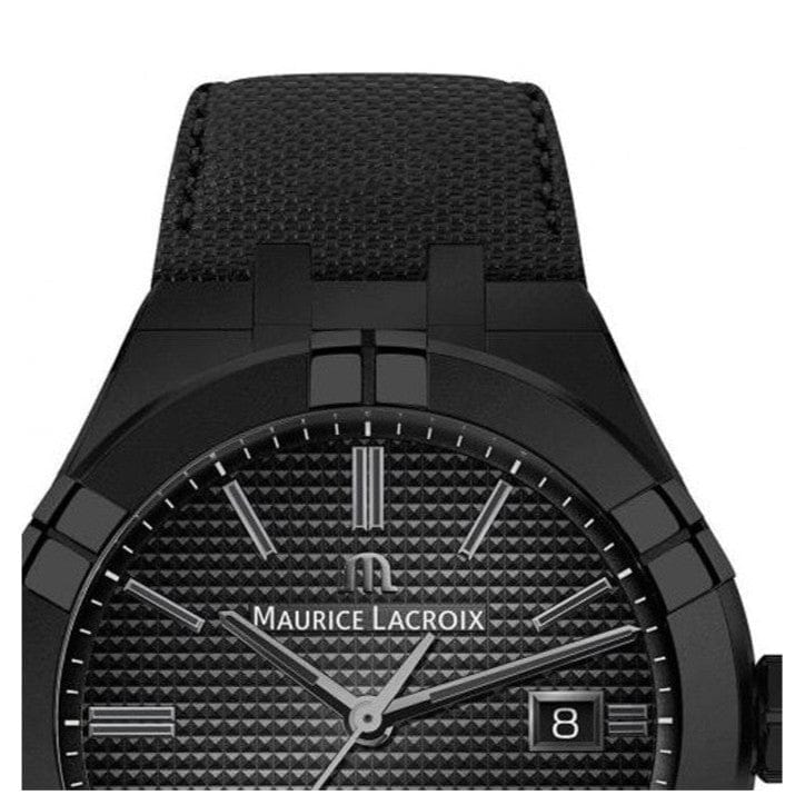 Maurice Lacroix Automatic Date Black Dial Black Leather Strap Watch For Men - AI6008-PVB01-330-1
