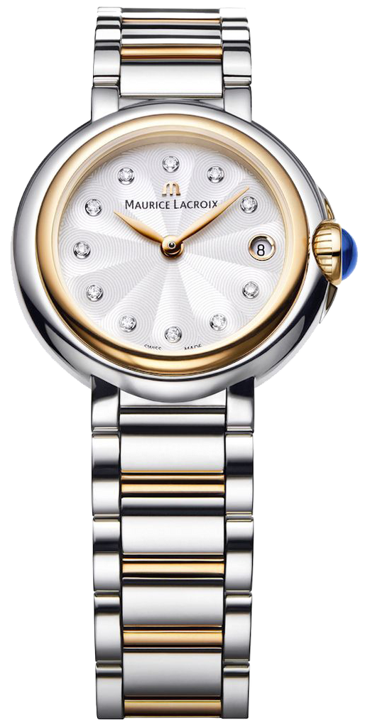 Complete a beautiful evening outfit with this elegant Maurice Lacroix Fiaba Date women's watch on your wrist. This watch accessorises your look with its two-colour combination and studded crown. The white dial is presented with a guilloché pattern and is highlighted by the stud indices and rose gold hands. It is comfortable to wear and easily pairs with all kinds of outfits.
