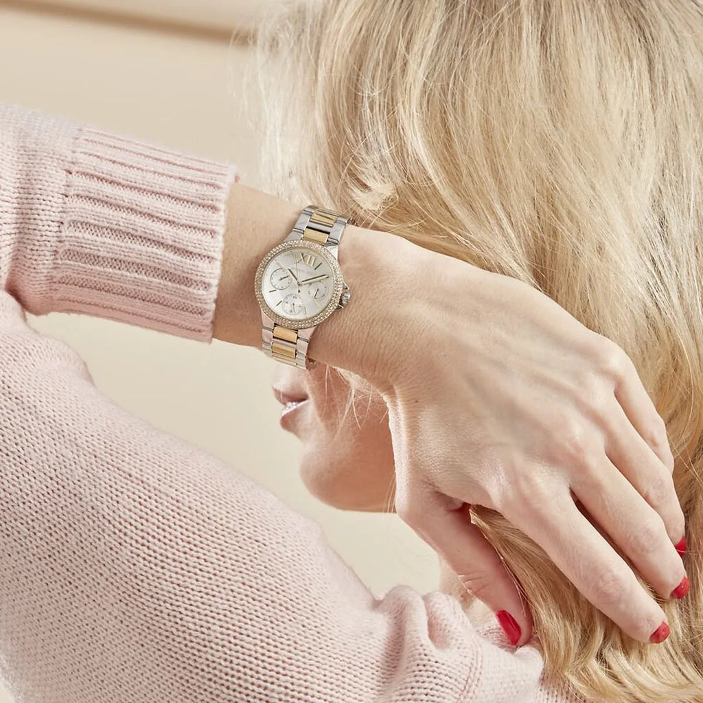 Michael Kors Camille Multifunction Silver Dial Two Tone Steel Strap Watch For Women - MK6982