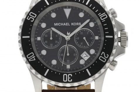 Expertly designed for the modern man, the Michael Kors Everest Chronograph watch boasts a bold black dial and sleek brown leather strap. With precise chronograph functionality, this timepiece offers both style and function for any occasion. Elevate your look with this luxurious watch.
