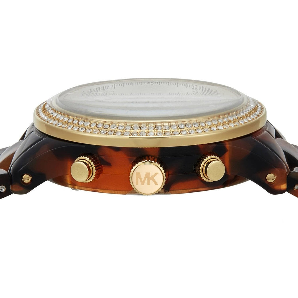 Michael Kors Runway Chronograph Gold Dial Brown Acetate Strap Watch for Women - MK7475