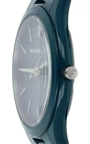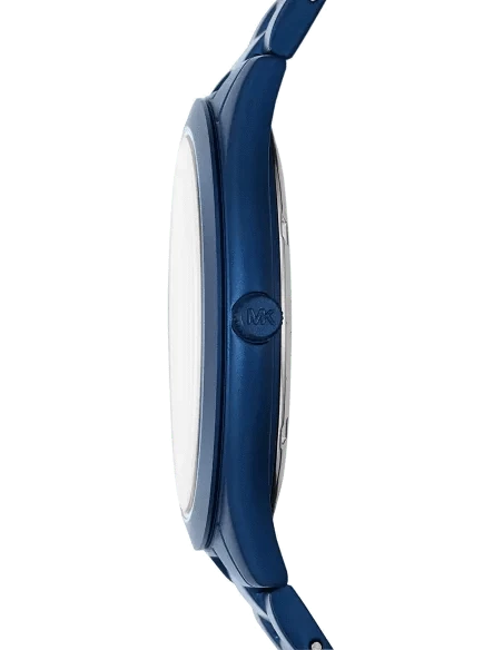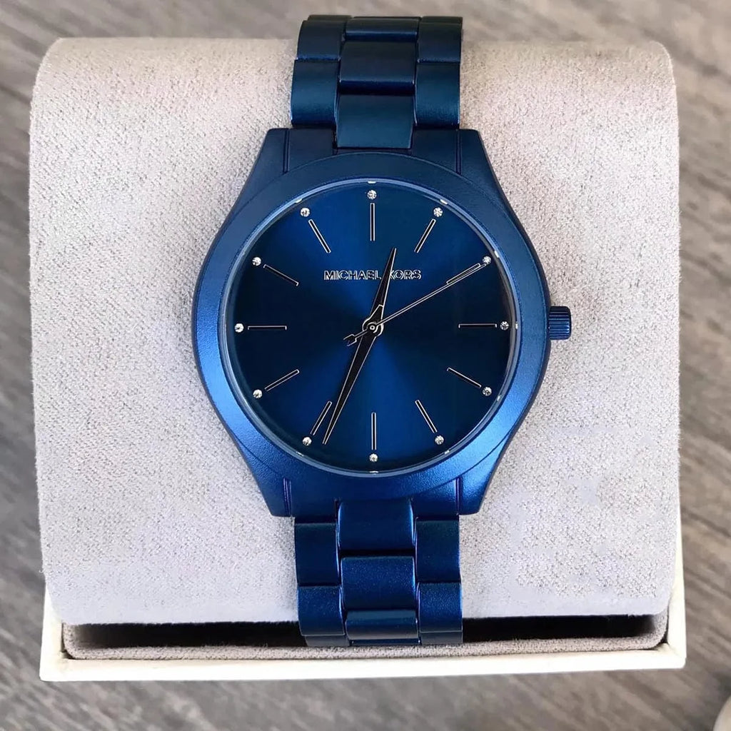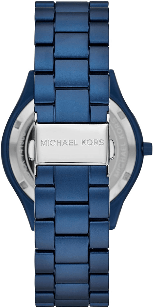 Inspire confidence and elegance with the Michael Kors Slim Runway Quartz Blue Dial Blue Steel Strap Watch for Women. Boasting a sleek and minimalist design, this watch features a stylish blue dial and sturdy steel strap. With precise quartz movement and expert craftsmanship, this timepiece is a perfect blend of style and functionality.