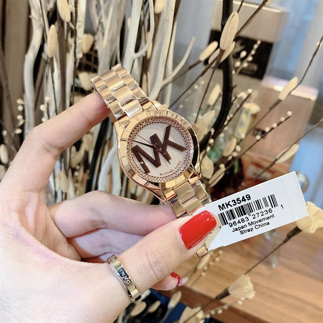 The Michael Kors Slim Runway Watch for Women - MK3549 showcases a stunning rose gold dial and matching steel strap, creating a luxurious and elegant look. With its slim design, this watch offers both style and comfort. Perfect for any occasion, this timepiece is a must-have for the modern woman.