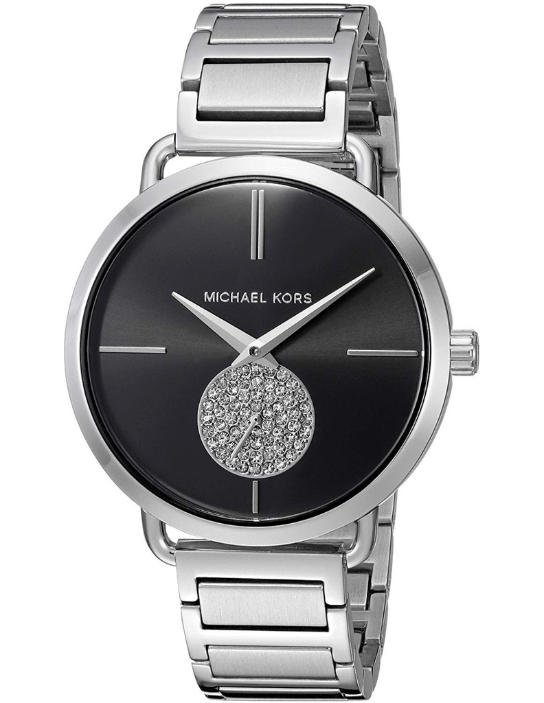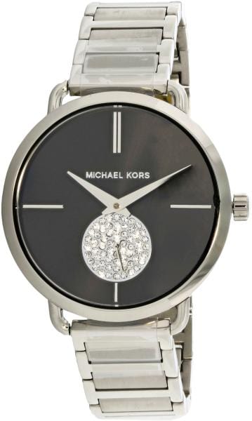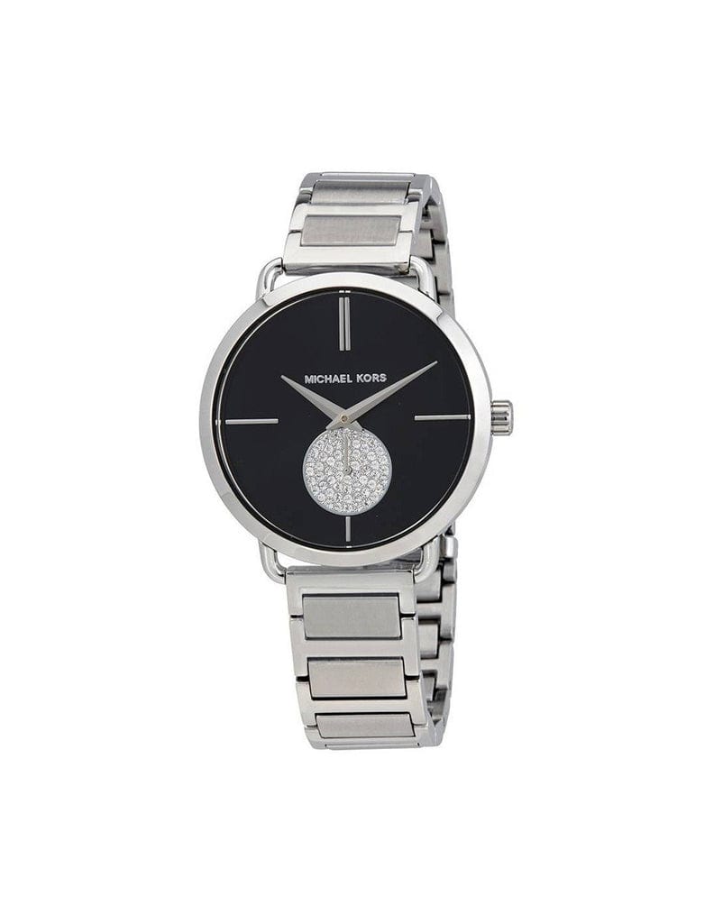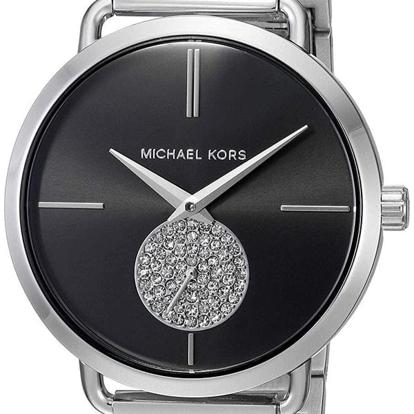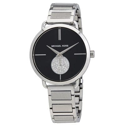 Michael Kors Portia Black Dial Silver Steel Strap Watch for Women - MK3638