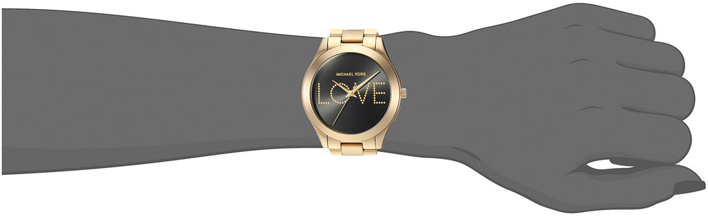 Michael Kors Slim Runway Black Dial Gold Steel Strap Watch for Women - MK3803