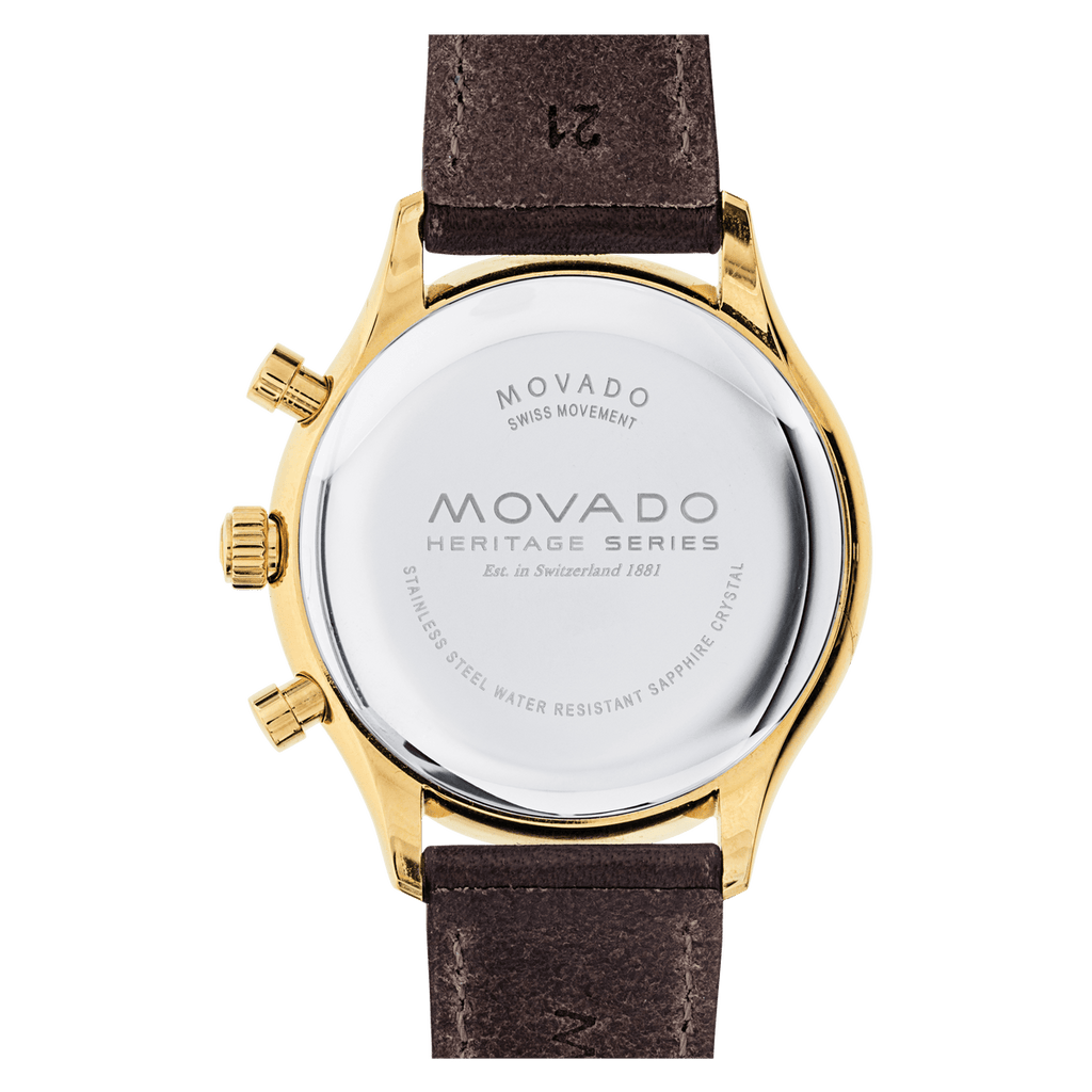 Movado Heritage Chronograph Green Dial Brown Leather Strap Watch For Men - 3650062