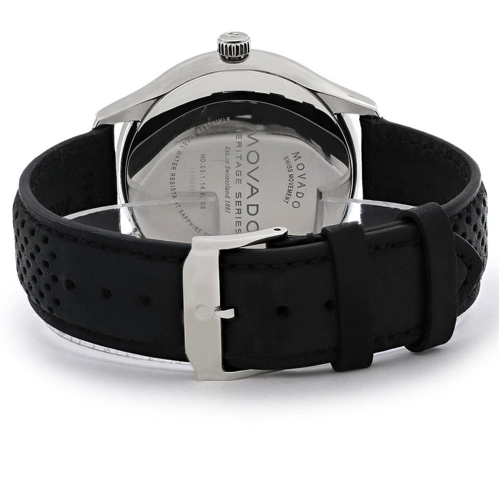 Movado Heritage Calendoplan Black Dial Black Leather Strap Watch for Men - 3650004