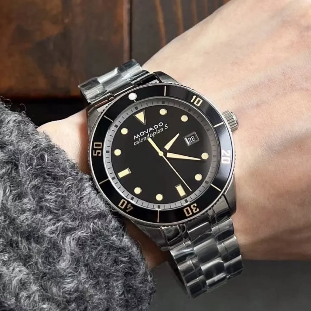 Brand Movado Model 3650095 Series Heritage Calendoplan Case Material Stainless Steel Case Diameter 40mm Dial Color Black Movement Swiss Quartz Crystal Scratch-Resistant Sapphire Water Resistance 30 meters (100 feet) Bracelet Material Stainless Steel Clasp Type Deployment Functions Hours, Minutes, Seconds, Date