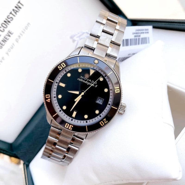 Movado Heritage Calendoplan Black Dial Silver Steel Strap Watch For Men - 3650095