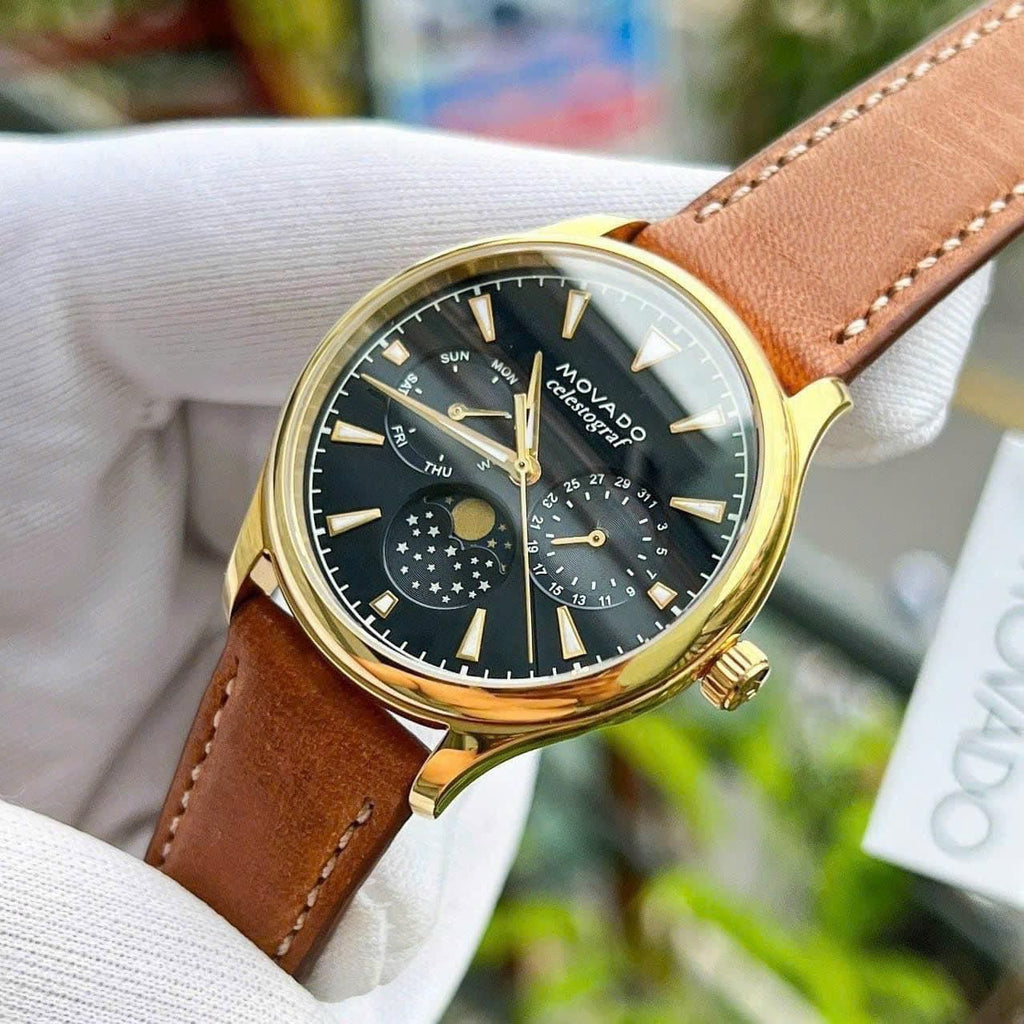 Movado Heritage Celestograf Navy Blue Dial Brown Leather Strap Watch For Women - 3650010