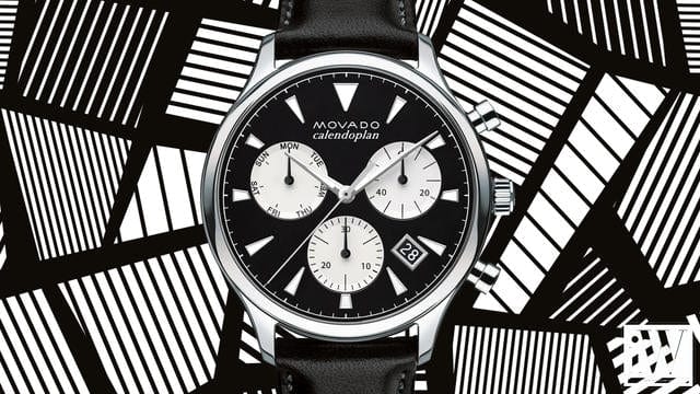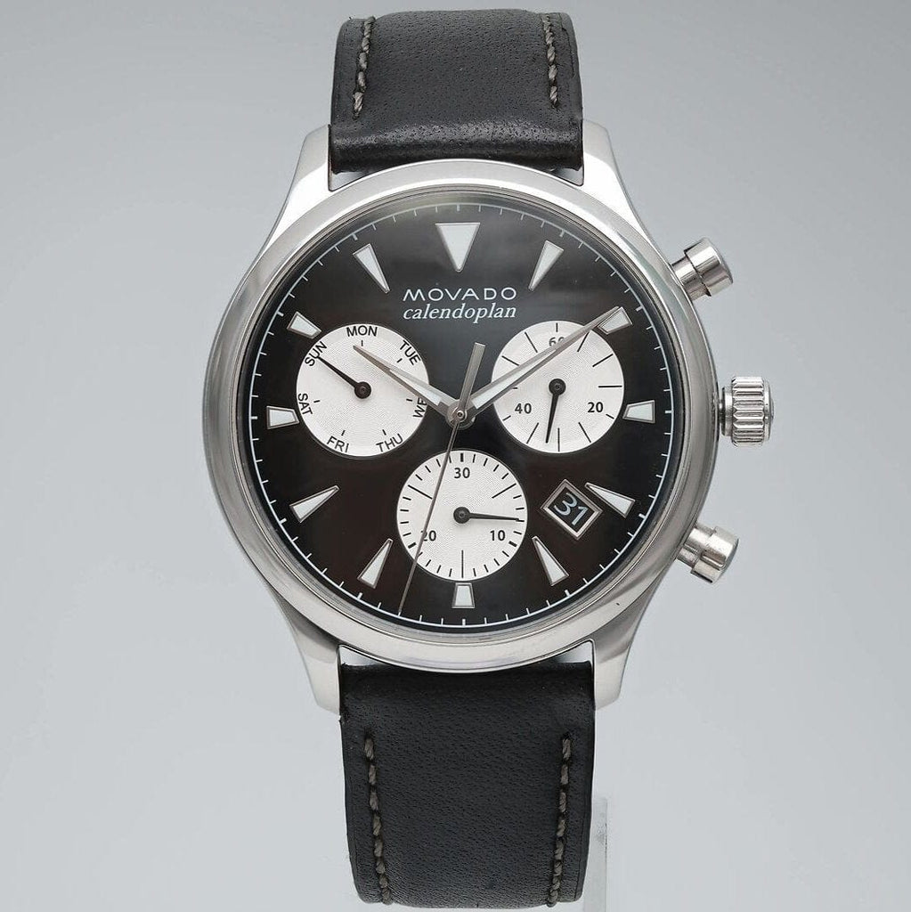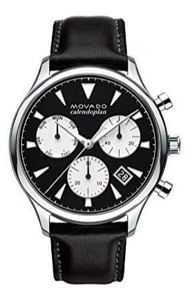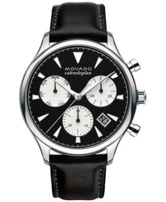 Movado Heritage Chronograph Black Dial Black Leather Strap Watch for Men - 3650005