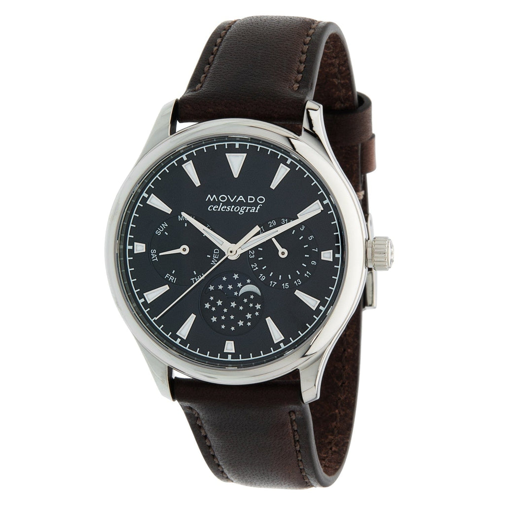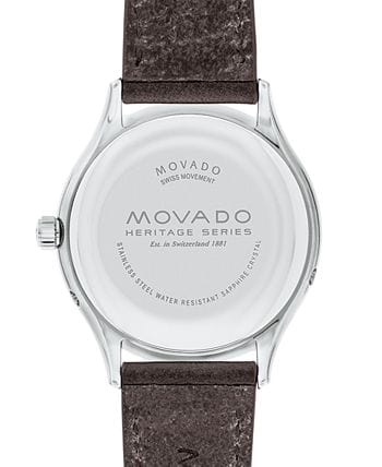 This Movado Women's Quartz Watch features a Heritage Moonphase navy blue dial, brown leather strap, and Swiss-made quartz movement. Accompanied by scratch-resistant sapphire crystal, this watch offers reliable timekeeping with a modern design. Keep time in style with the Movado Women's Watch.