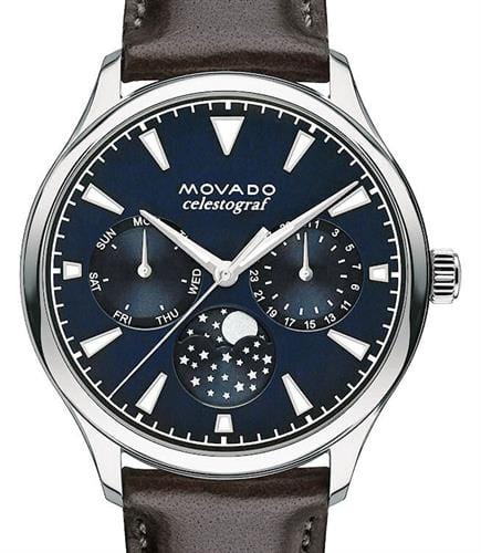 Movado Heritage Moonphase Blue Dial Brown Leather Strap Watch For Women - 3650009