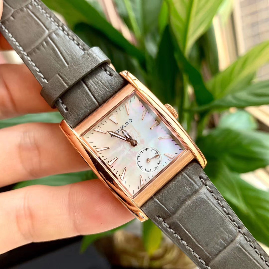 Movado Heritage Mother of Pearl White Dial Grey Leather Strap Watch For Women - 3650051