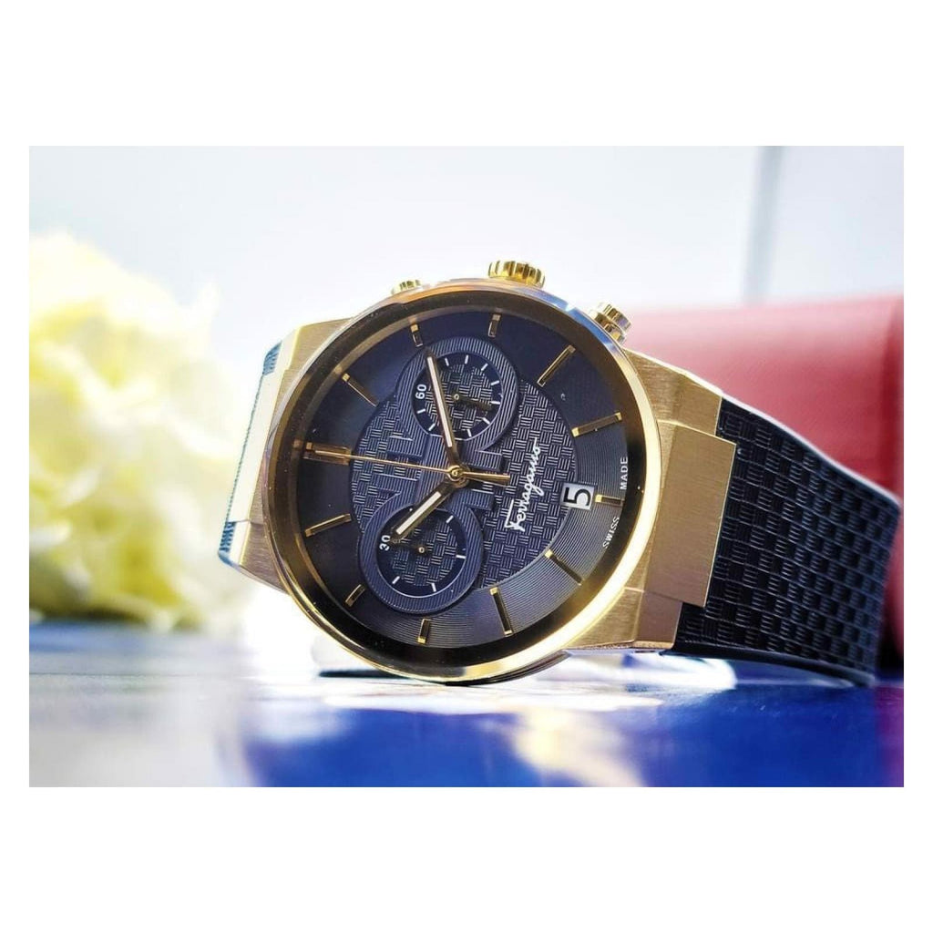 Salvatore Ferragamo Sapphire Chrono Blue Dial Blue Silicone Strap Watch for Men - SFME00221