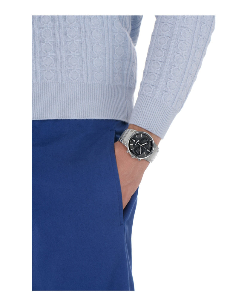 Salvatore Ferragamo Sapphire Chrono SFME00321 men's chronograph casual wristwatch with quartz movement, 41 mm diameter stainless steel case, black dial, sapphire crystal and stainless steel bracelet