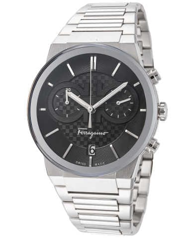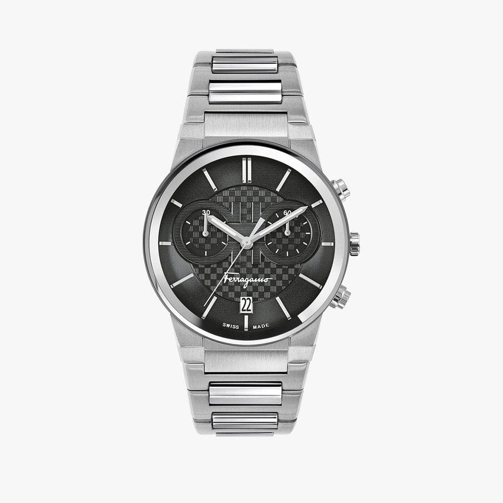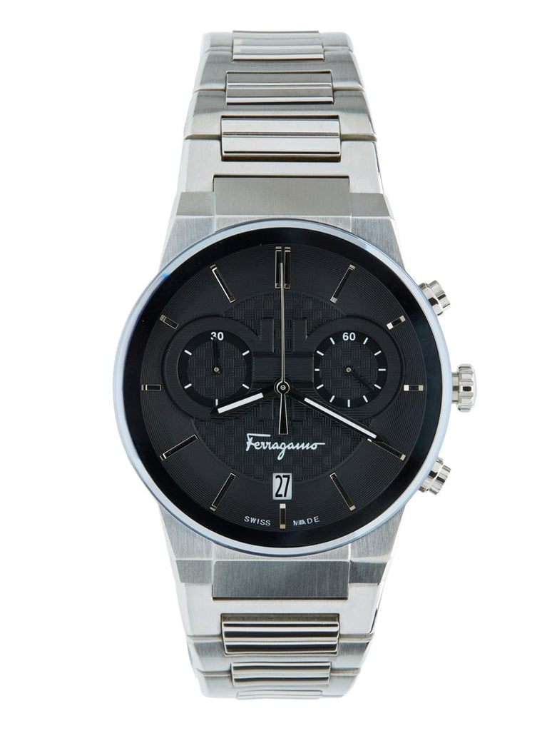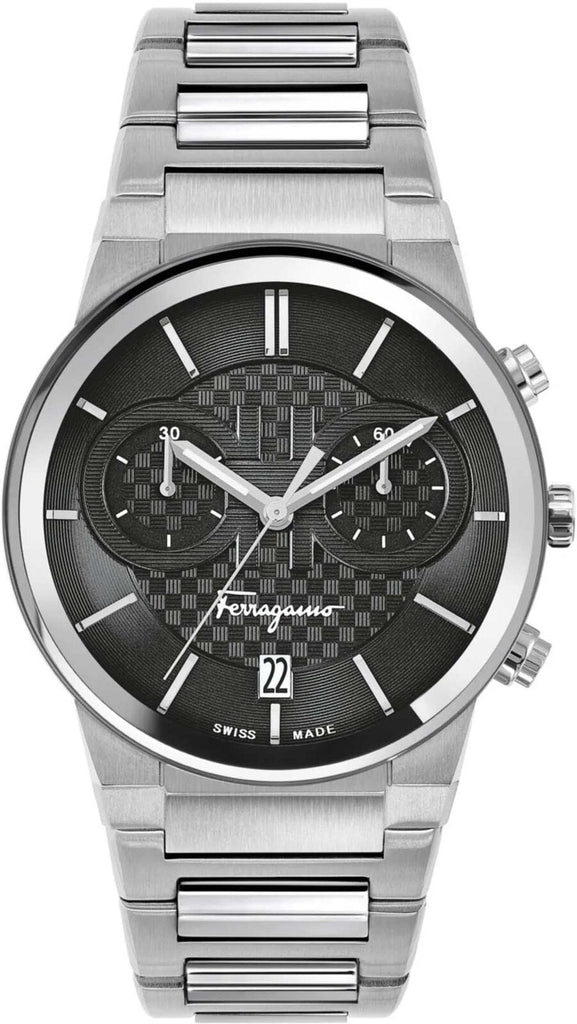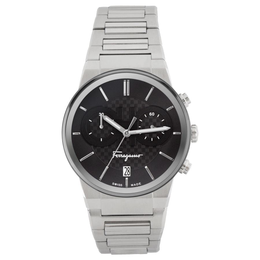 Salvatore Ferragamo Sapphire Chrono Black Dial Silver Steel Strap Watch for Men - SFME00321