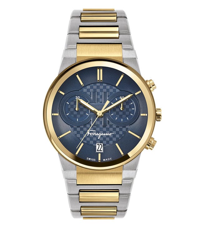 Salvatore Ferragamo Sapphire Chrono Blue Dial Two Tone Steel Strap Watch for Men - SFME00521
