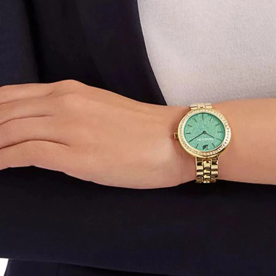 A luxurious and charming watch that will accompany you day and night.- Case - stainless steel with yellow gold tone coating with 48 clear crystals