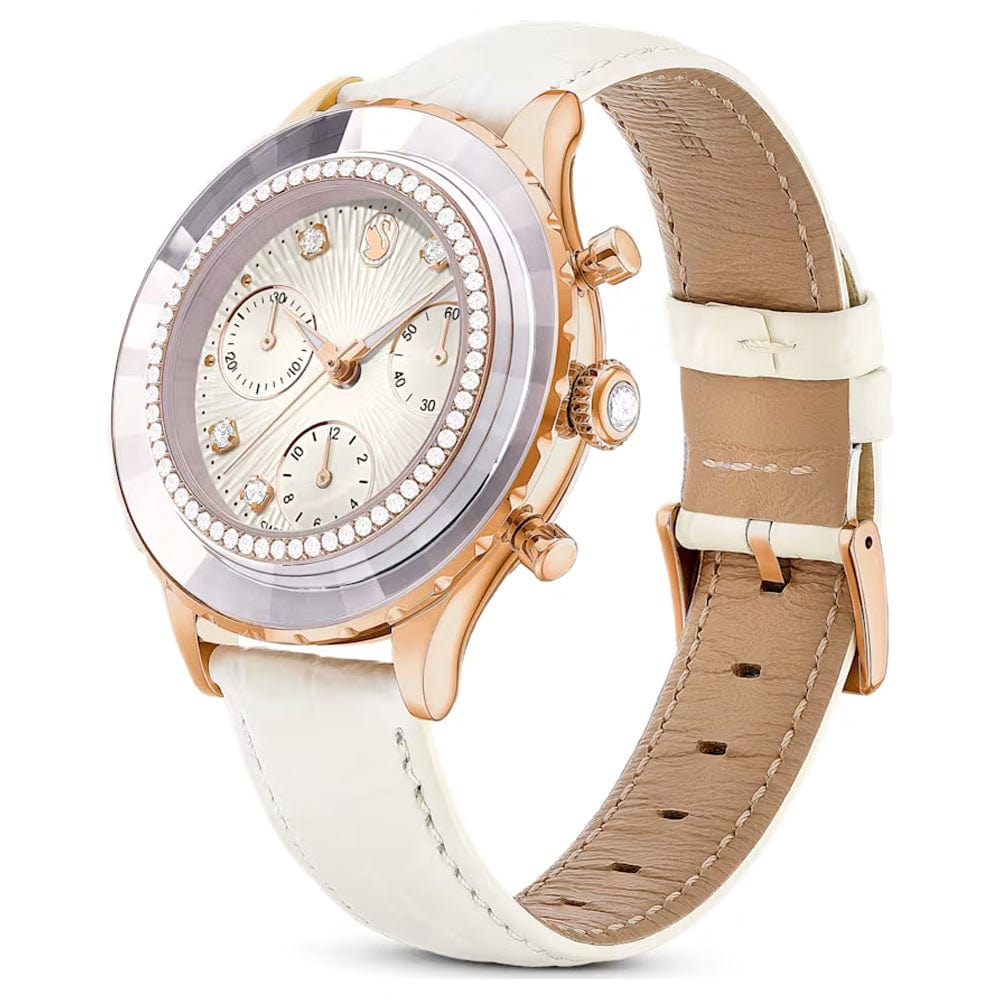 Swarovski Octea Chrono Crystals White Dial White Leather Strap Watch for Women - 5671150