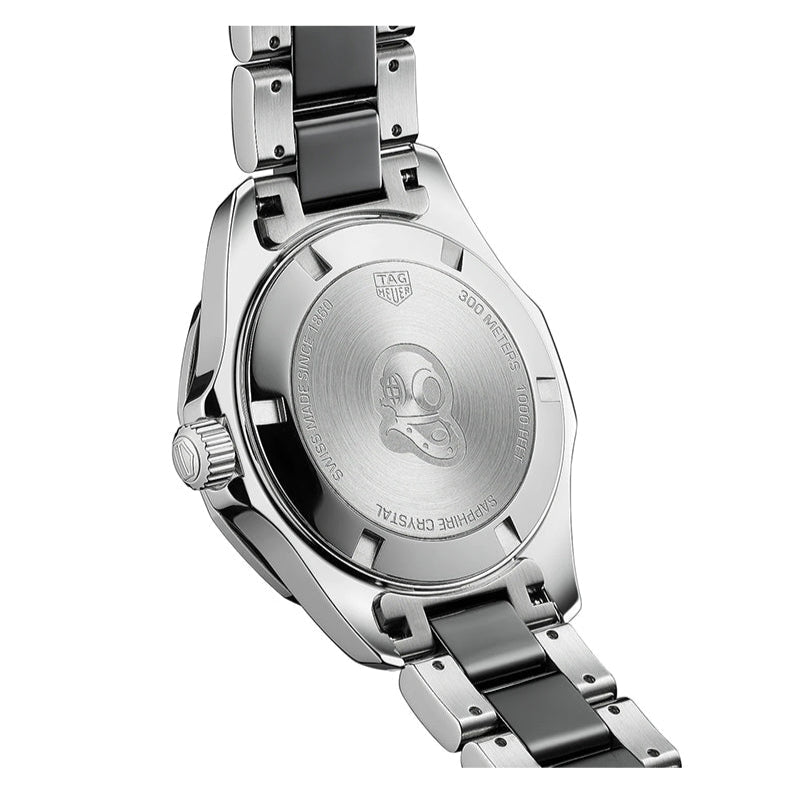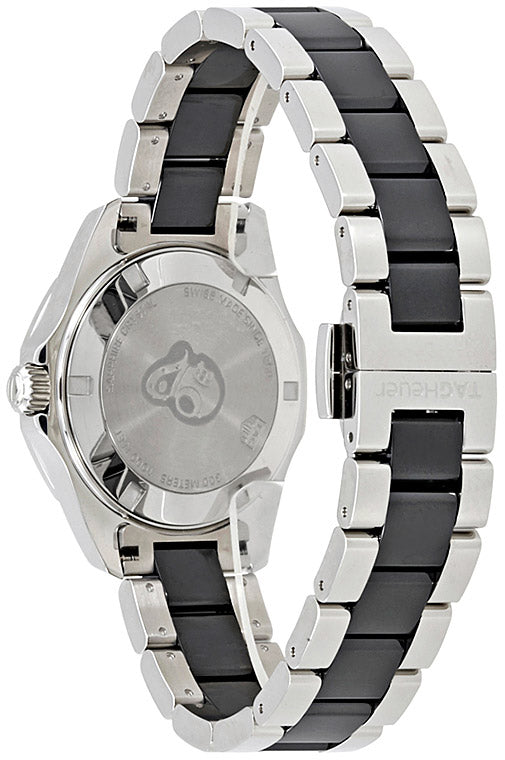 Tag Heuer Womens Aquaracer Silver Stainless Steel Case Quartz Black Dial Silver Stainless Steel with Black Ceramic Center Links Bracelet Watch