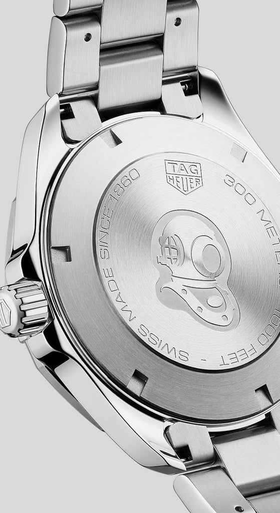 For better visibility, the sapphire crystal’s interior is anti-reflection treated. An integrated diver extension allows the steel bracelet to be worn over a suit. Fully water and shock resistant, this is a true diving instrument.