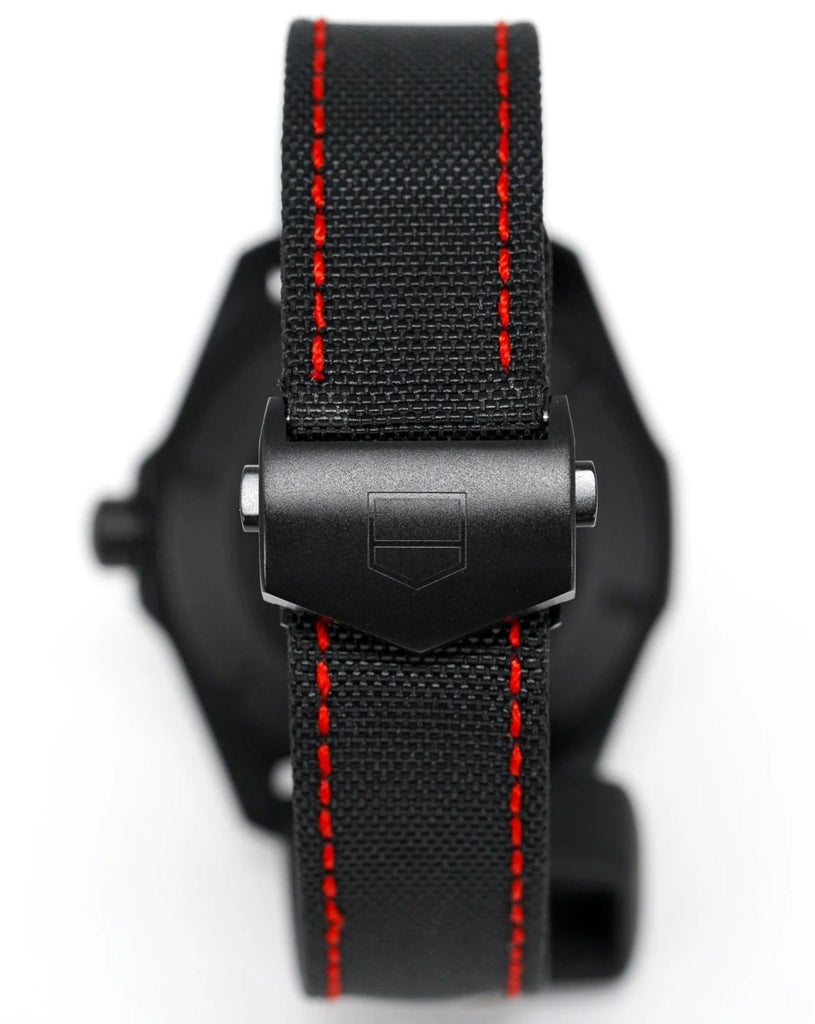 21.5mm Red Nylon Strap with Sand Blasted Black PVD Coated Titanium Grade 2 Folding Clasp.