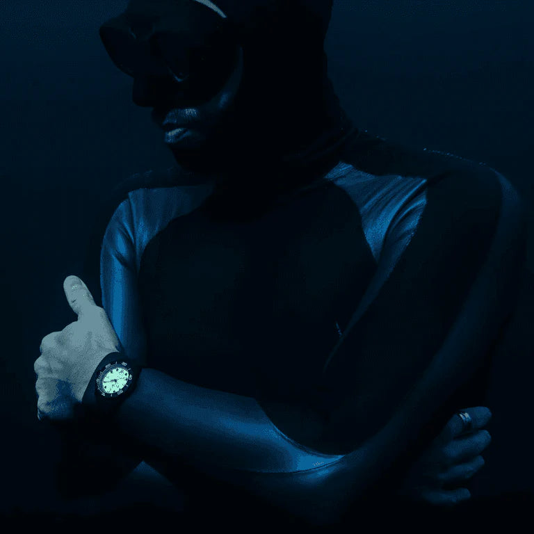 - Matte black cermaic bezel ring with diving scale & luminous starting triangle.