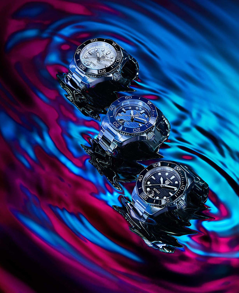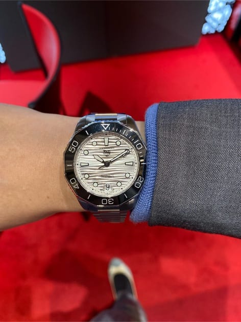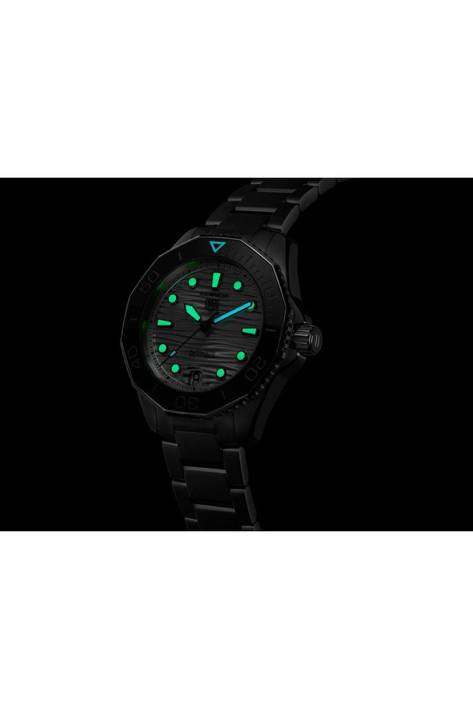 Meet the perfect diving companion in 36mm. This special edition TAG Heuer Aquaracer, with its silver-lacquered dial, is ready for any challenge. Bold black gold-plated hands and markers applied with white Super-LumiNova® offer absolute legibility day