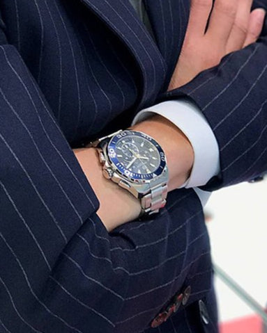 A 43mm quartz chronograph with full professional diving features. Heuer’s link to the high-pressure world of watersports began in 1895, the year it patented its first water-resistant case. The rugged, go-anywhere Aquaracer... continues the legacy.