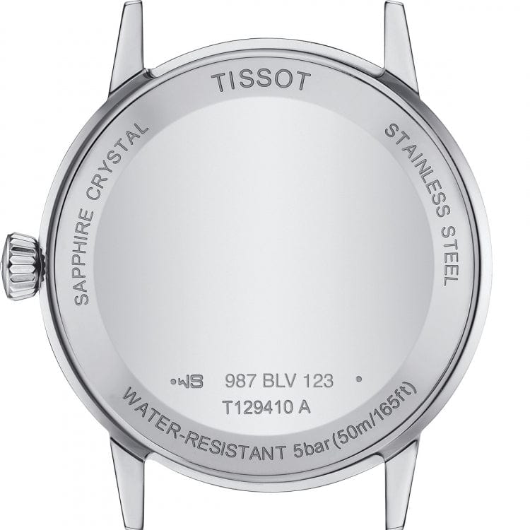 Tissot T129.410.11.053.00 Classic Dream Men Watch. The case is made out of silver stainless steel with a silver bezel, which stands for the high quality of the item, it has black dial. This model has got 50 meters of water resistance. it can be worn in scenarios where it is likely to be splashed but not immersed in water and will be fine in rain. The watch is shipped with an original box and a guarantee from the manufacturer.