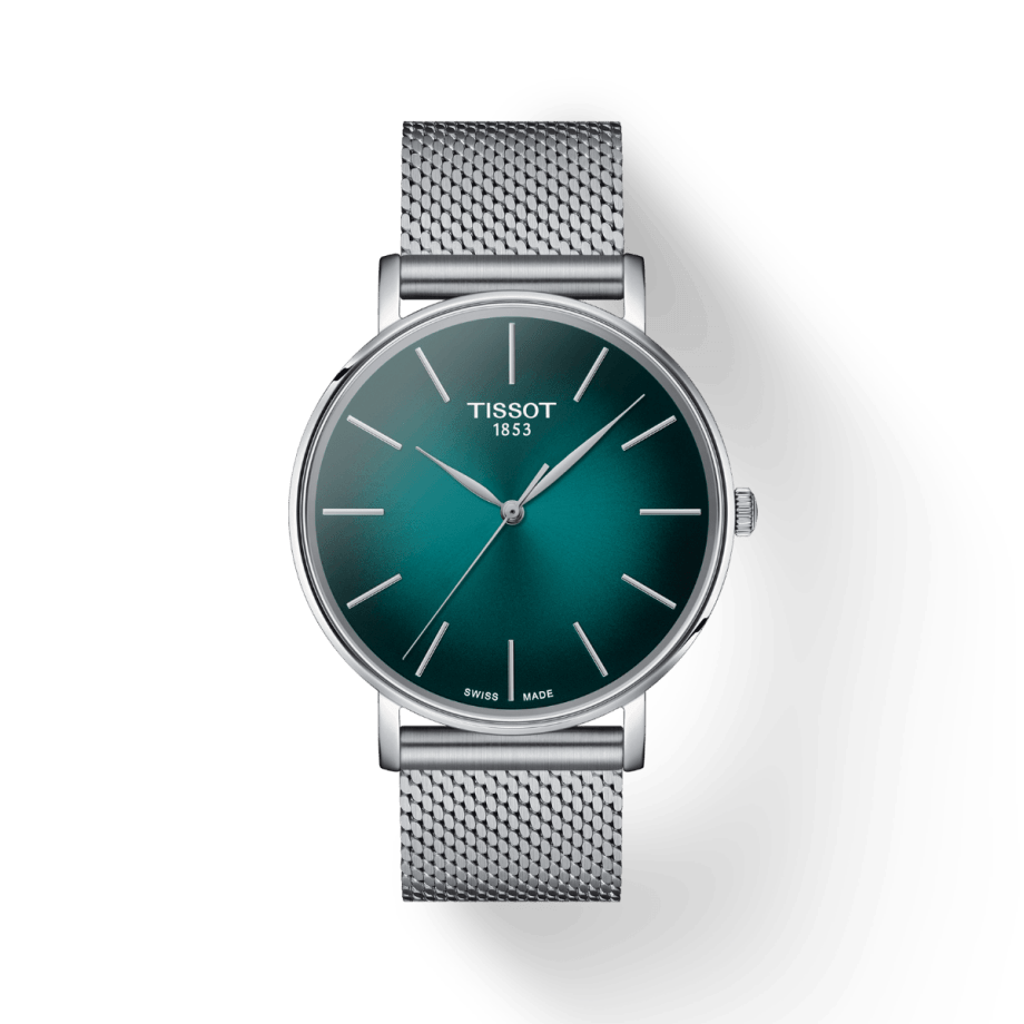 Tissot Everytime Gent Green Dial Silver Mesh Bracelet Watch for Men - T143.410.11.091.00