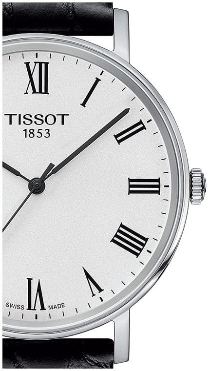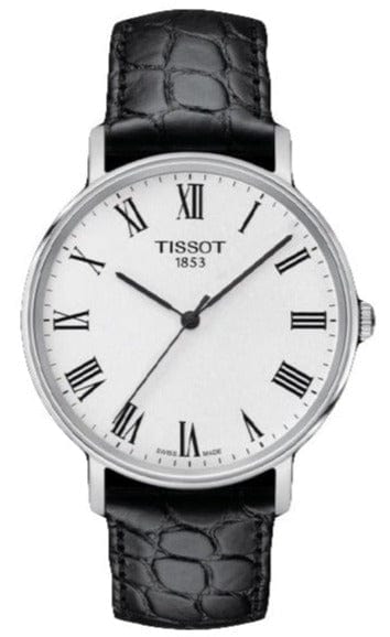 Tissot Everytime Medium White Dial Black Leather Strap Watch For Men - T109.410.16.033.01