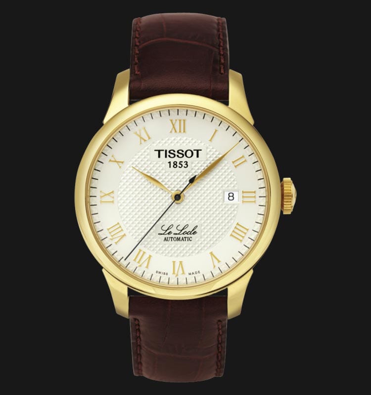 Tissot Le Locle Automatic Gold Dial Brown Leather Strap Watch For Men - T41.5.413.73