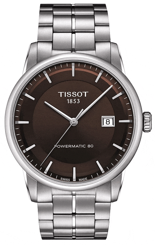 Tissot Luxury Powermatic 80 Brown Dial Silver Steel Strap Watch For Men - T086.407.11.291.00