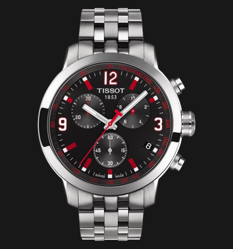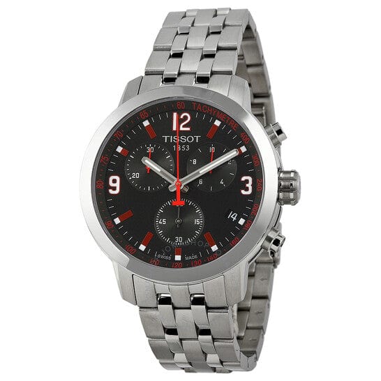 Tissot PRC 200 Asian Games Special Edition Black Dial Silver Steel Strap Watch For Men - T055.417.11.057.01