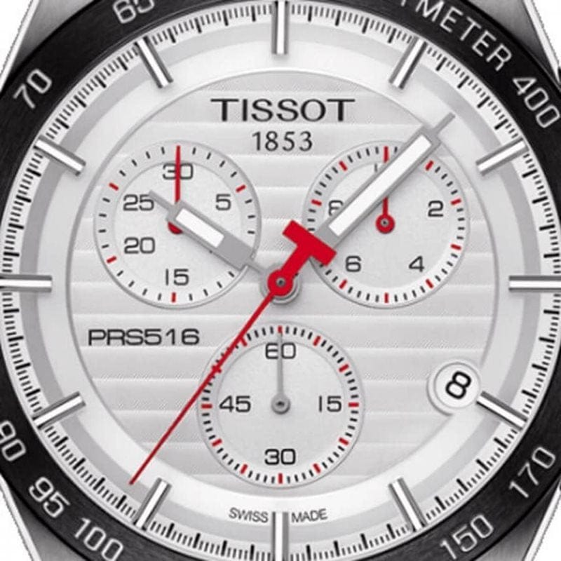 Expertly crafted, the Tissot T Sport PRS 516 Chronograph is the perfect watch for men. Featuring a sleek white dial and sturdy silver steel strap, it exudes a professional and sophisticated look. With precise chronograph functions and Swiss-made quality, this timepiece is a reliable companion for any occasion.