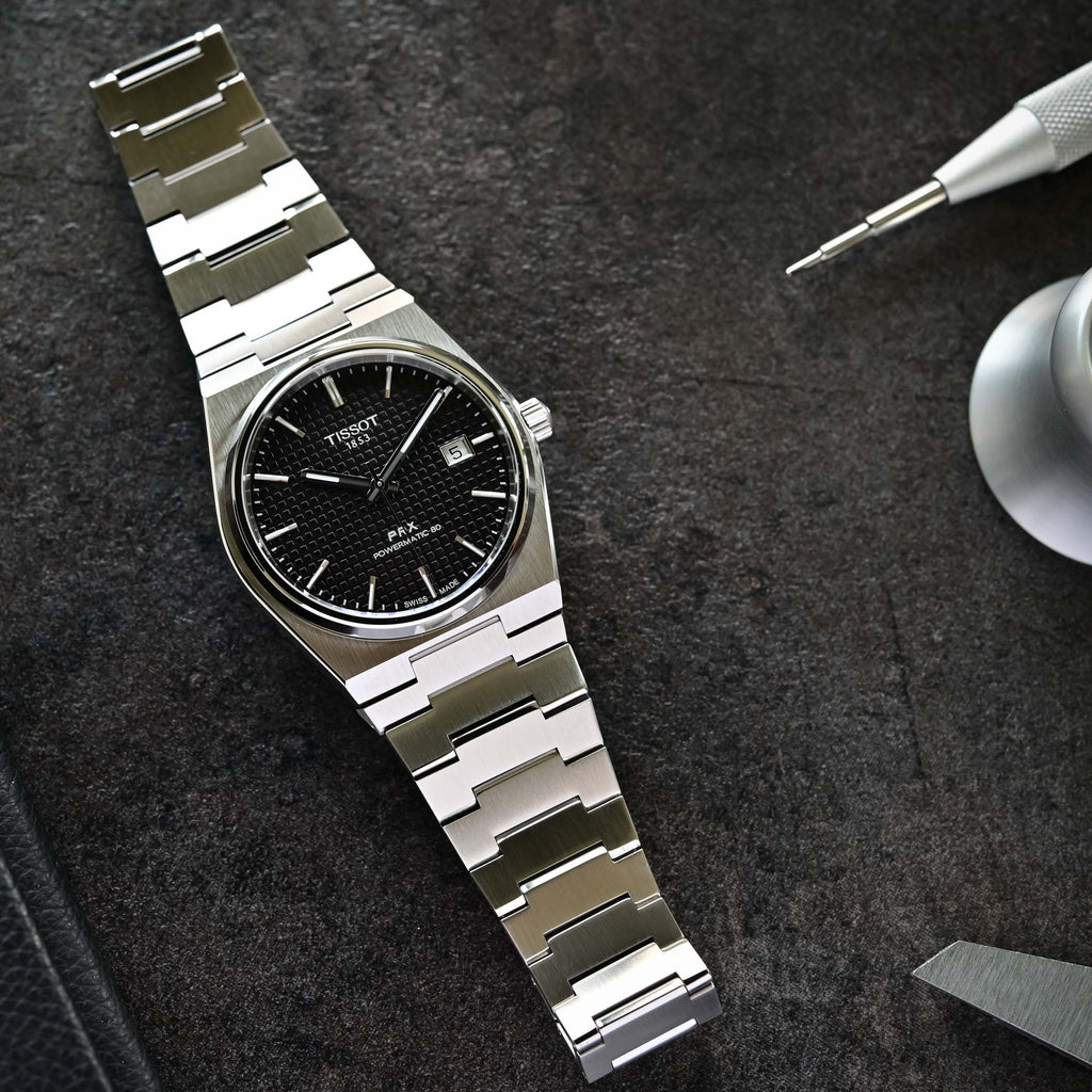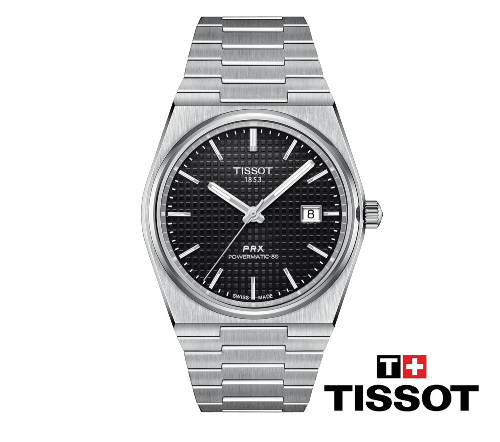 Tissot PRX Powermatic 80 Black Dial Silver Steel Strap Watch for Men - T137.407.11.051.00