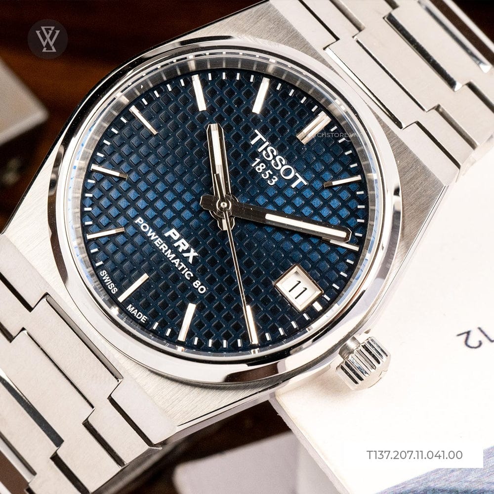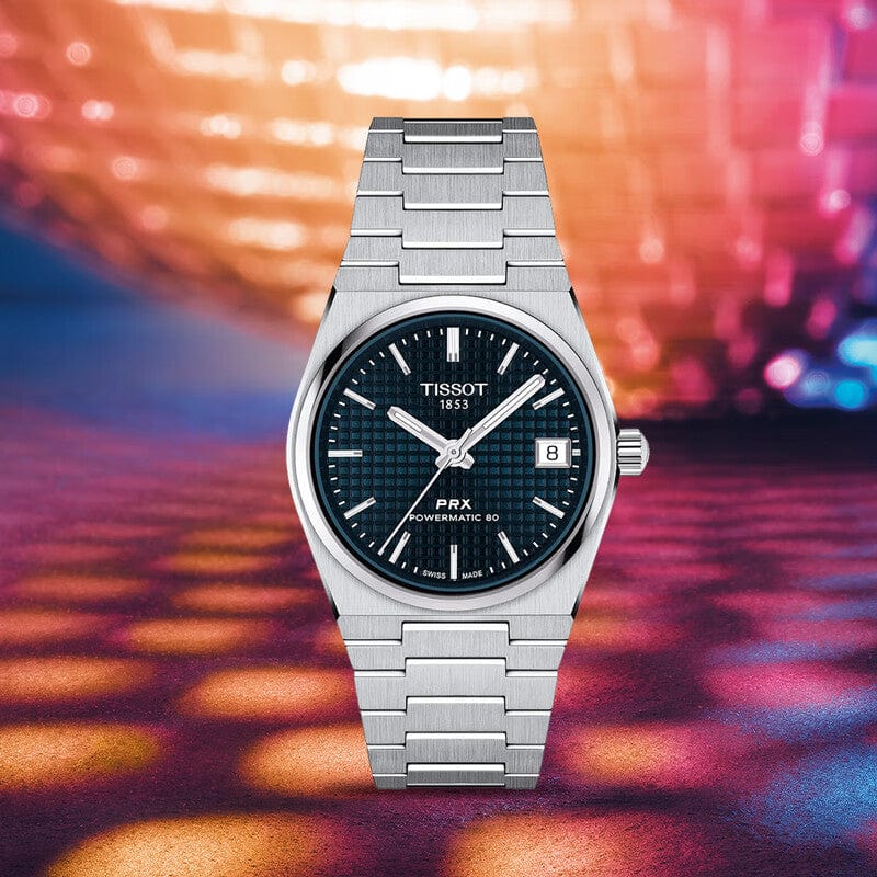 Indulge in luxury with the Tissot PRX "Powermatic 80" watch. Its 35mm blue dial boasts timeless sophistication, while the Powermatic 80 feature ensures precise timekeeping. Elevate your style and stay punctual with this exquisite timepiece.