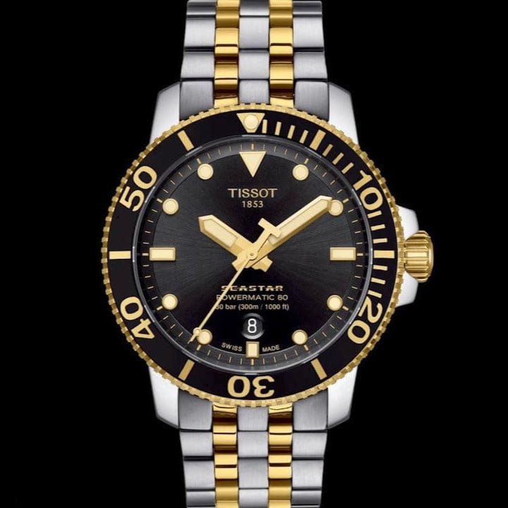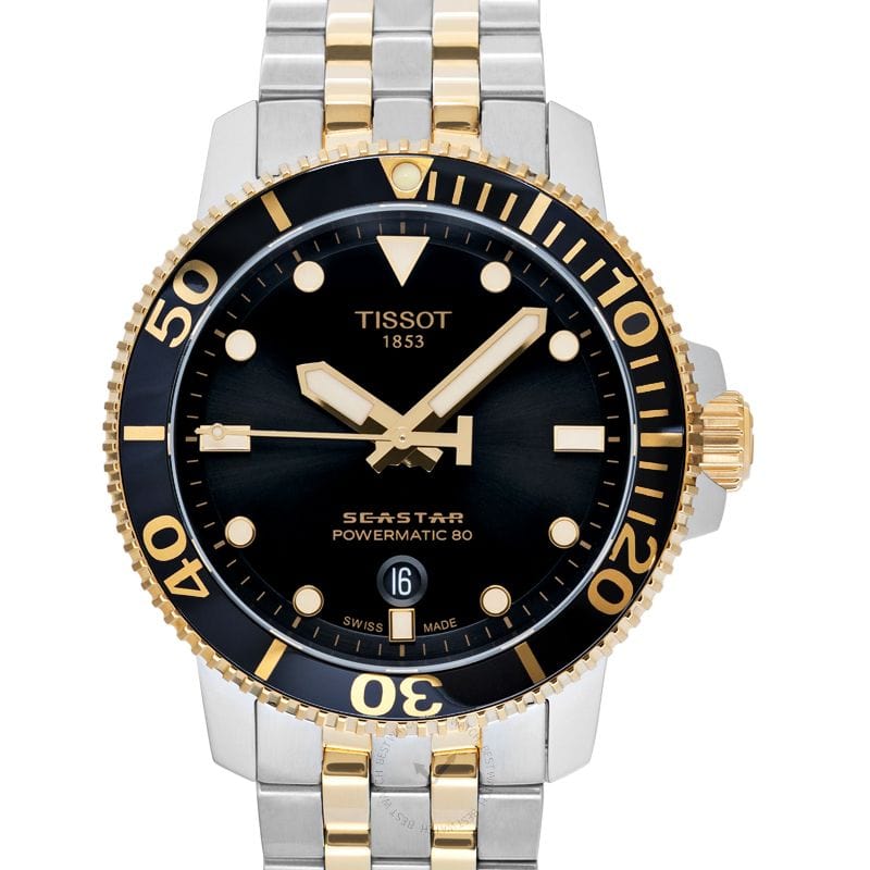 Tissot Seastar 1000 Powermatic 80 Black Dial Two Tone Steel Strap Watch For Men - T120.407.22.051.00