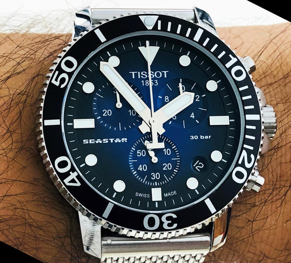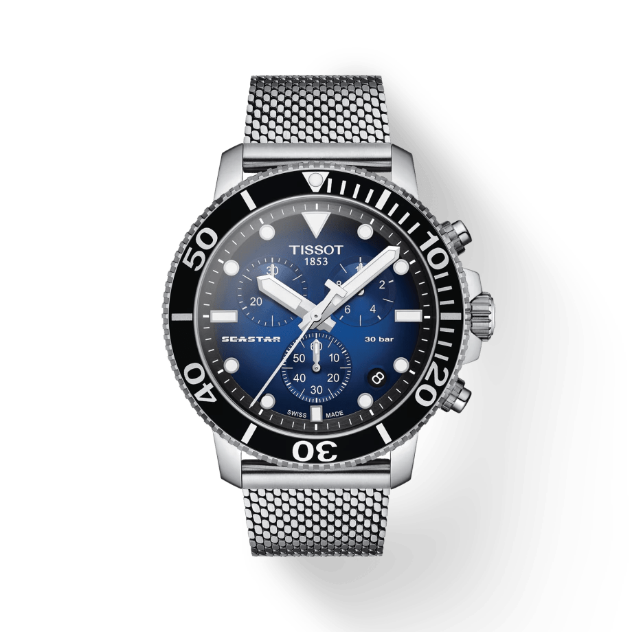 Tissot Seastar 1000 Chronograph Blue Dial Silver Mesh Bracelet Watch For Men - T120.417.11.041.02
