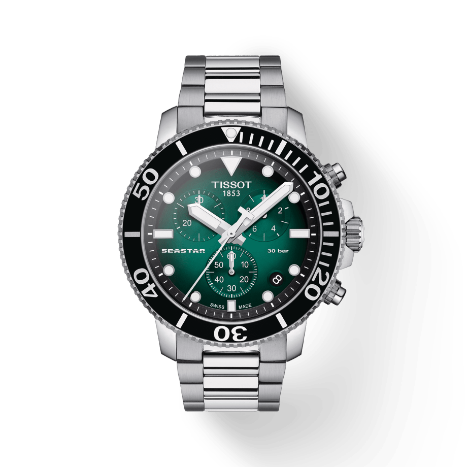 Tissot Seastar 1000 Chronograph Green Dial Silver Steel Strap Watch For Men - T120.417.11.091.01