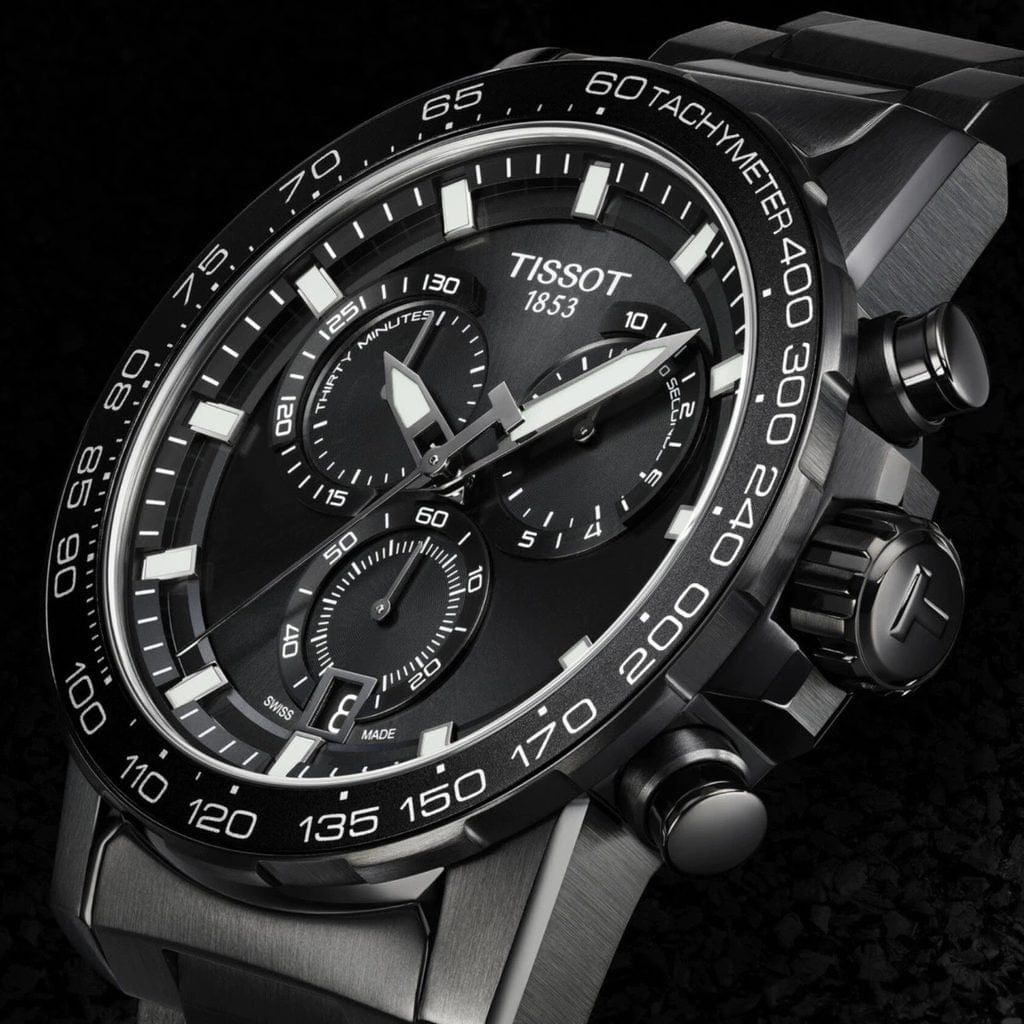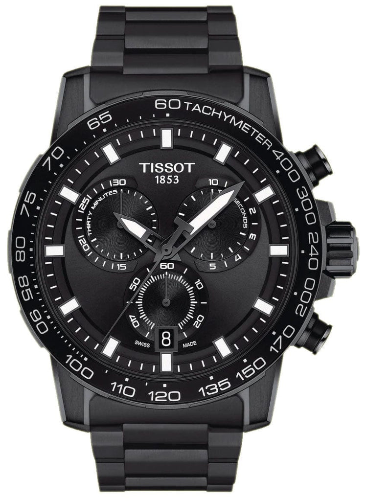 The Tissot Supersport Chrono watch features a sleek black dial and black steel strap, making it a stylish choice for men. This watch also offers precise timekeeping, durability, and water resistance. Designed by Tissot, a renowned brand in the watch industry, this timepiece combines expert craftsmanship and modern design. Perfect for the modern man on the go.