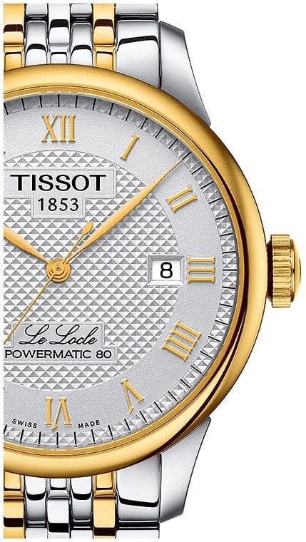 Introducing the Tissot T Classic Le Locle Powermatic 80 Silver Dial Two Tone Steel Strap Watch for Men. Combining sleek design and precise timekeeping, this watch features a silver dial, two tone steel strap and Powermatic 80 movement for exceptional accuracy. Elevate your style and stay on schedule with this sophisticated timepiece.