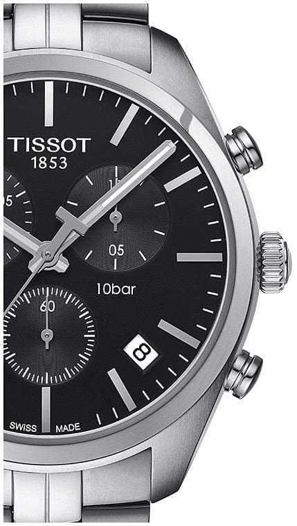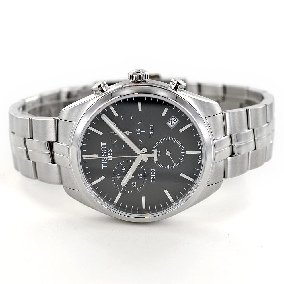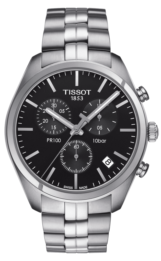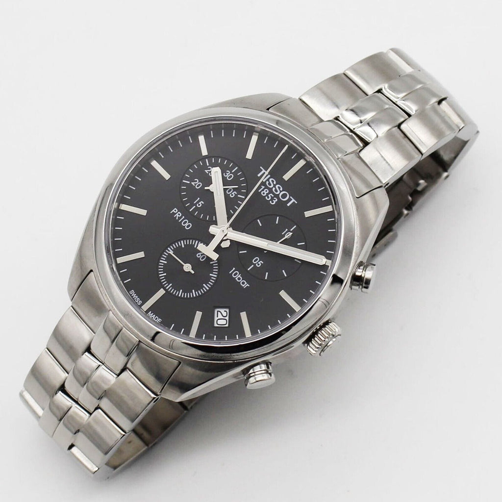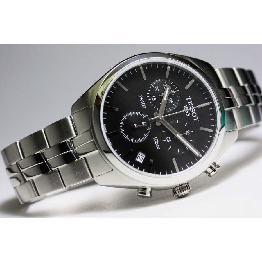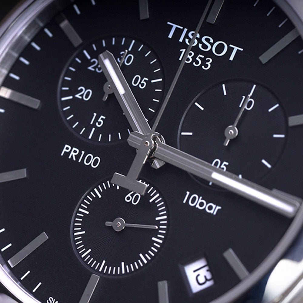 Tissot T Classic PR 100 Chronograph Black Dial Silver Steel Strap Watch for Men - T101.417.11.051.00