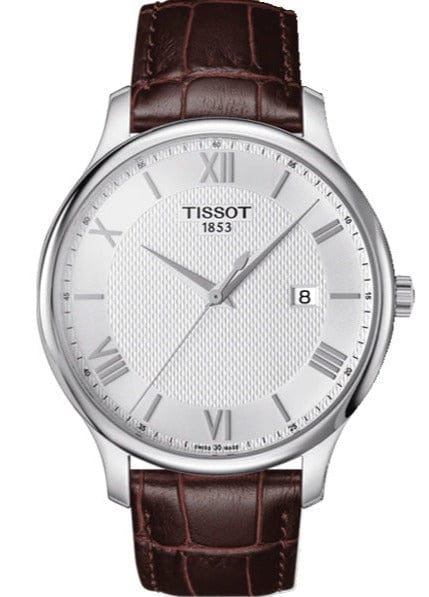 Tissot T Classic Tradition Silver Dial Brown Leather Strap Watch For Men - T063.610.16.038.00