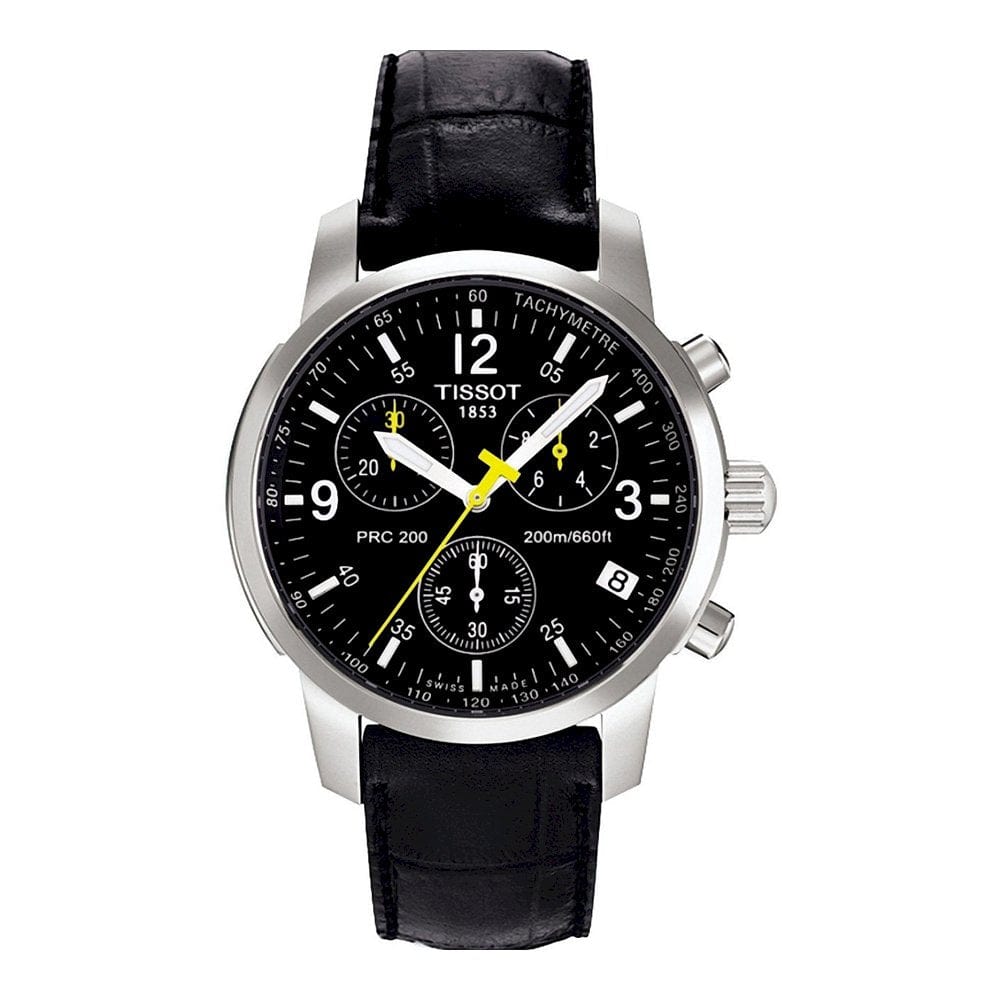 Tissot T Race PRC 200 Chronograph Quartz Black Dial Black Leather Strap Watch for Men - T17.1.526.52